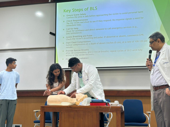 “ On 13th September 2025, Indian Institute of Management Bodh Gaya, in collaboration with Paras Health, conducted a CPR Training Program to spread awareness about life-saving emergency response skills among students. The session focused on teaching participants the correct techniques of Cardiopulmonary Resuscitation (CPR) and the importance of immediate action during medical emergencies. The program aimed to move from awareness to action by equipping participants with practical knowledge that can help save lives. Through this initiative, the institute took another step toward building a responsible and prepared community capable of responding effectively in critical situations.”